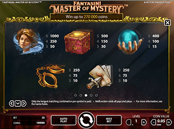 Слотхантеры выбираютигровые автоматы Вулкан на деньгииз огромной коллекции азартных игр 3D. Новичкам и опытным игрокам понравится играть онлайн в модель Fantasini: Master Of Mystery, представленную в 2016 году создателем Netent. Среди аналогов аппарат Фантазини: Мастер Мистерий выделяется благодаря уникальным графическим элементам.