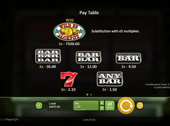 Lucky Reels представляет собой классический трехбарабанный игровой автомат с максимально упрощенной системой настройки и активации спинов, в который можно играть бесплатно. Запустив его демо эмулятор, вы заметите, что разработчикам удалось создать оригинальный внешний вид для стандартной слот-машины. Панель управления представлена в виде игральных фишек и разноцветных кнопок. Для успешной активации барабанов популярного агрегата достаточно знать назначение следующих из них: