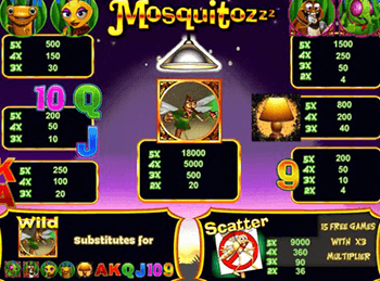 Mosquitozzz – игровой аппарат от Novomatic, рассказывающий о жизни виртуальных насекомых. Аппарат предлагает посетителям игорного заведения отправиться на лесную поляну и познакомиться с самыми маленькими жителями зеленой чащи. Ведь жуки и бабочки, комары и стрекозы стали главными героями slot, принимая активное участие в раздаче золотых монет. Основным персонажем, которому симулятор доверил раздачу джек-пота, выступает москит. Именно это маленькое жужжащее насекомое порадует гостей казино, решивших играть на деньги в игровой автомат, выплатами до 9 000 кредитов. Проверить, какие дополнительные награды эмулятор предлагает любителям азарта, очень просто в режиме демо.